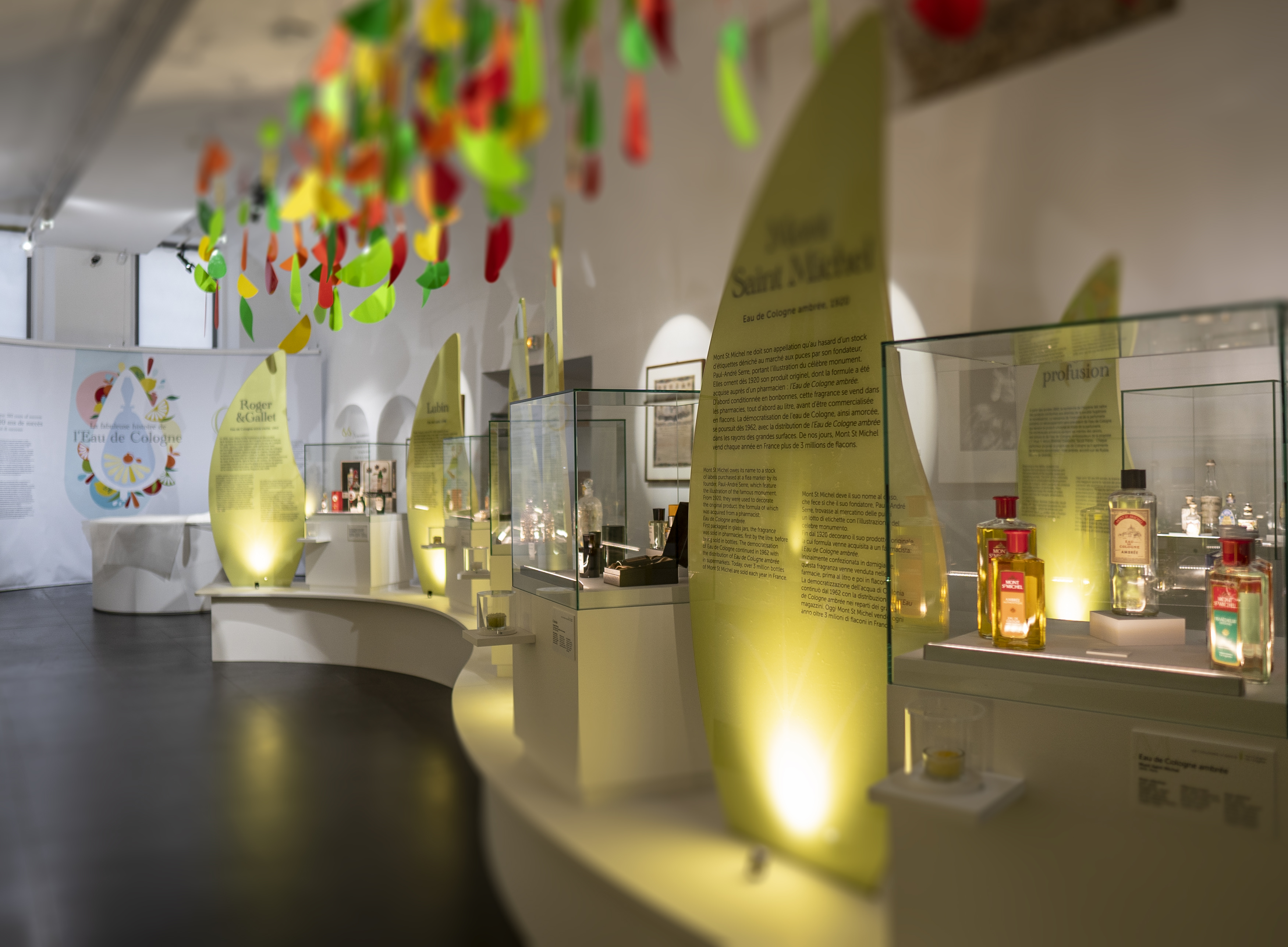 The visitor starts his journey in 1709 when Jean-Marie Farina creates the first Eau de Cologne in the eponymous city. He then follows the rise of Cologne until the late nineteenth century, when large perfume firms launch their declination of the product.