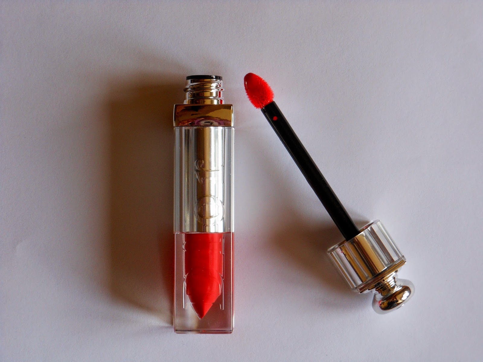 • La texture. Plus fluide qu’un rouge à lèvres, elle est proche d’une laque ou d’un vernis. La formule est très brillante, comme celle d’un gloss mais sans aspect collant. La couleur est très pigmentée.